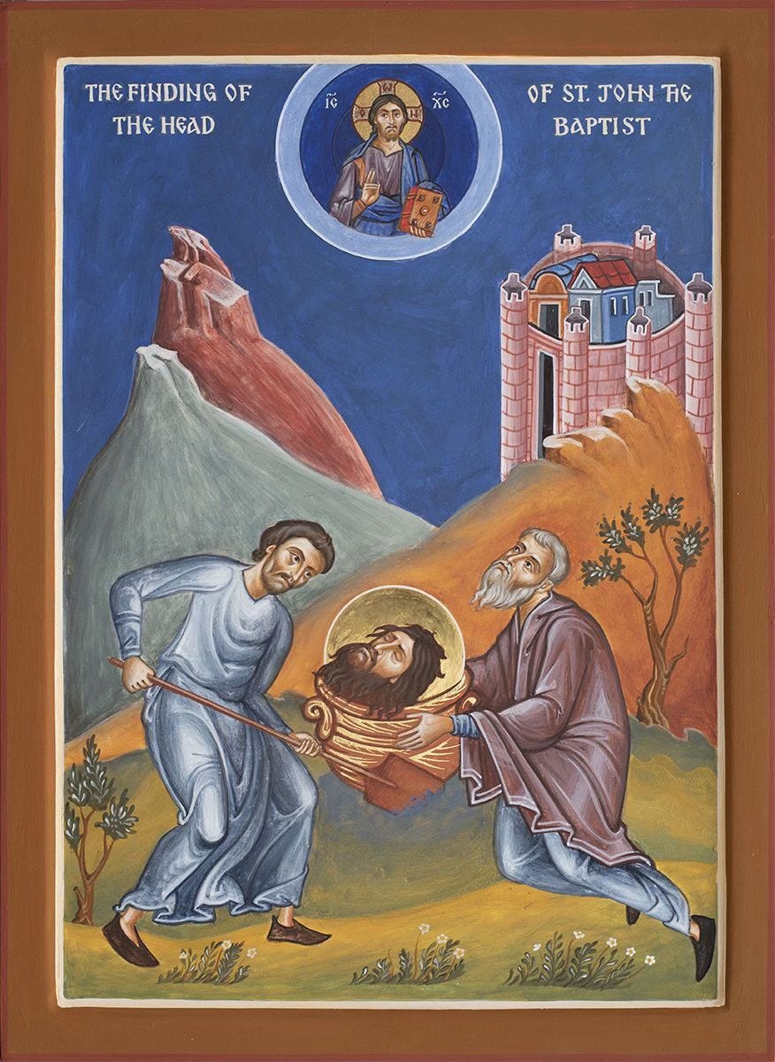 Yesterday a friend of mine, also a deacon, told me that when he was growing up he often wondered: “Why did they lose St. John’s head in the first place?” I had written about this question last year, so it came in handy—I am reposting that reflection here in a revised and expanded form.